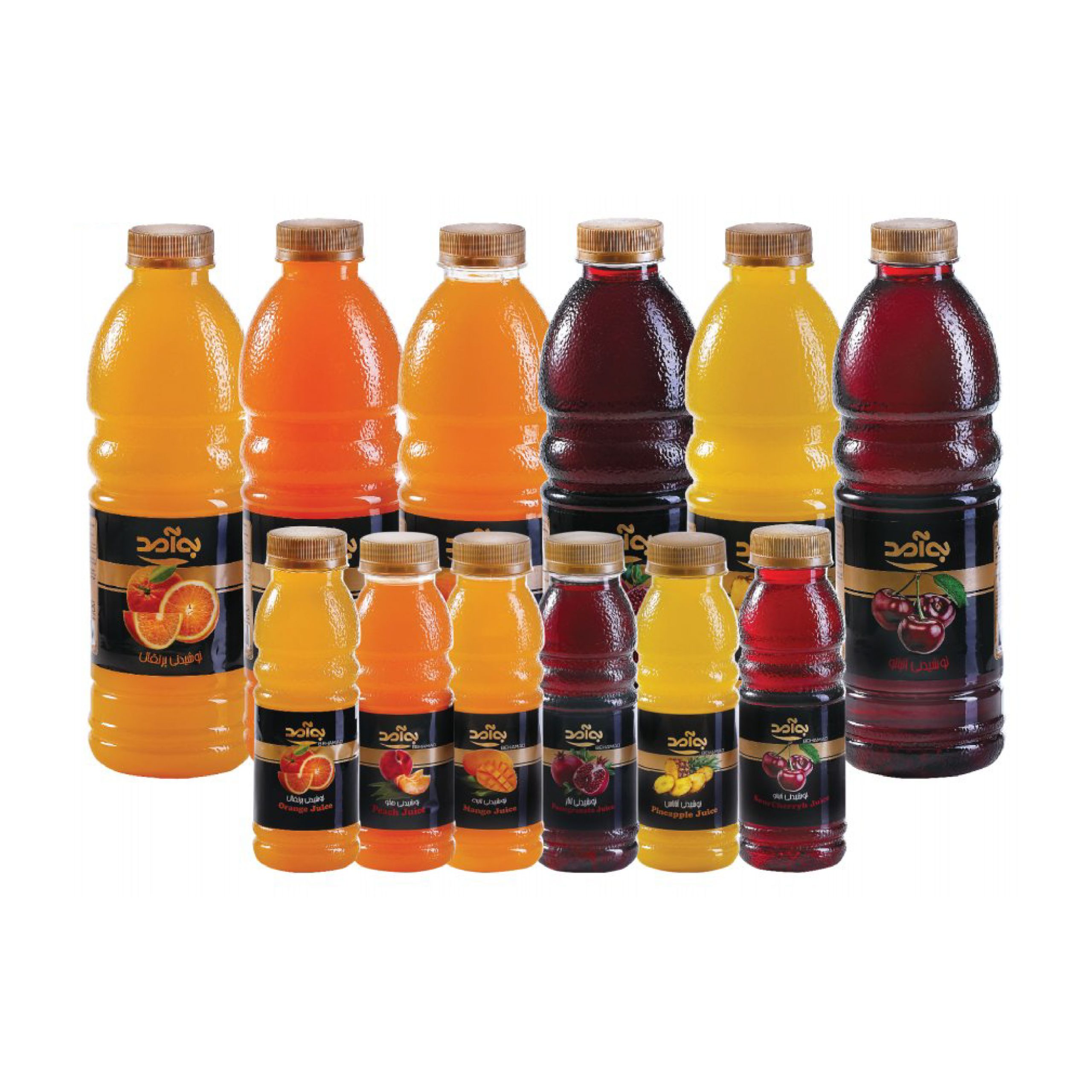 پتهای بهآمد در بطریهای 300 سیسی و 1000 سیسی در طعمهای مختلف آلبالو، آناناس، انار، انبه، هلو و پرتغال عرضه میشوند.