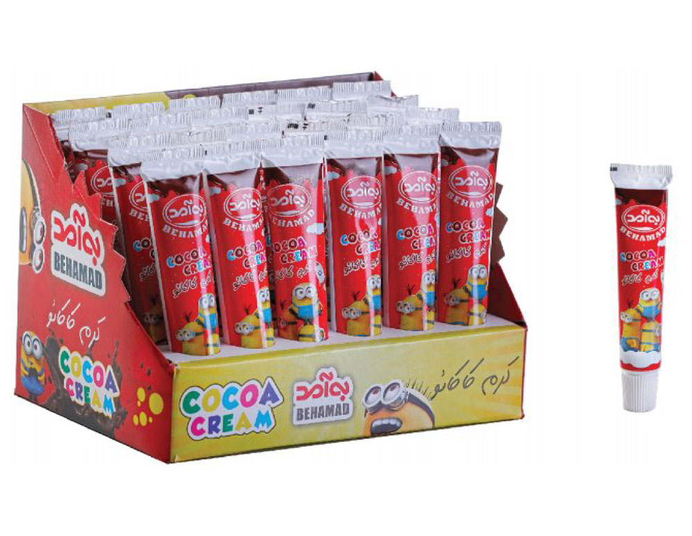 کرم کاکائوهای تیوپی 15 گرمی به‌آمد در بسته‌بندی کارتن، هر کارتن حاوی 8 جعبه و در هر جعبه 24 عدد کرم کاکائو عرضه می‌شود.